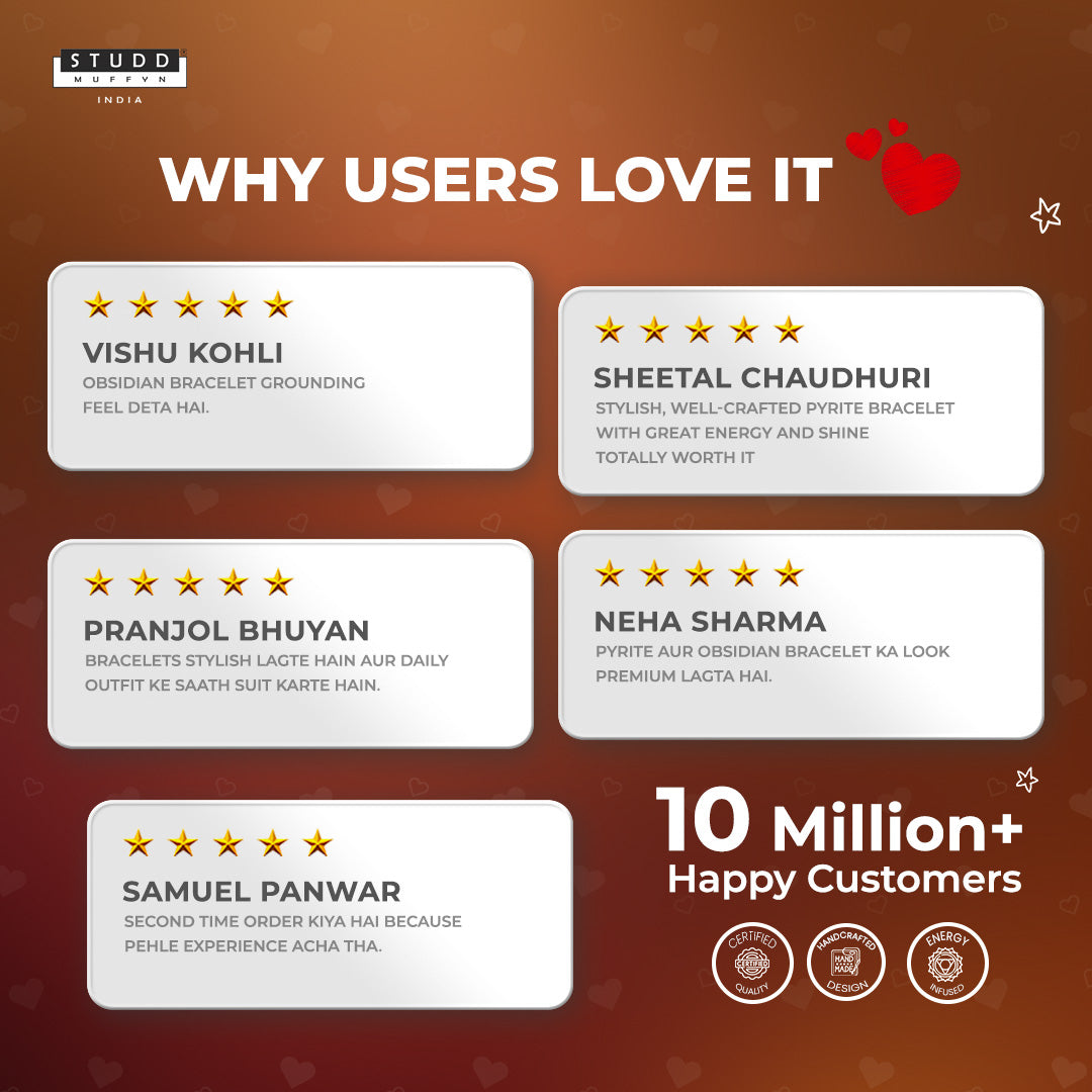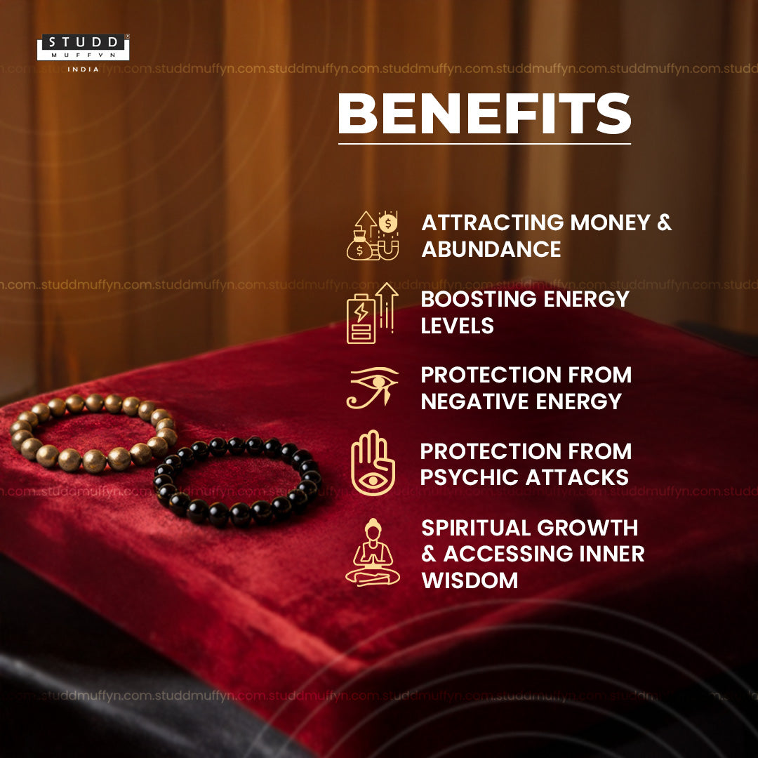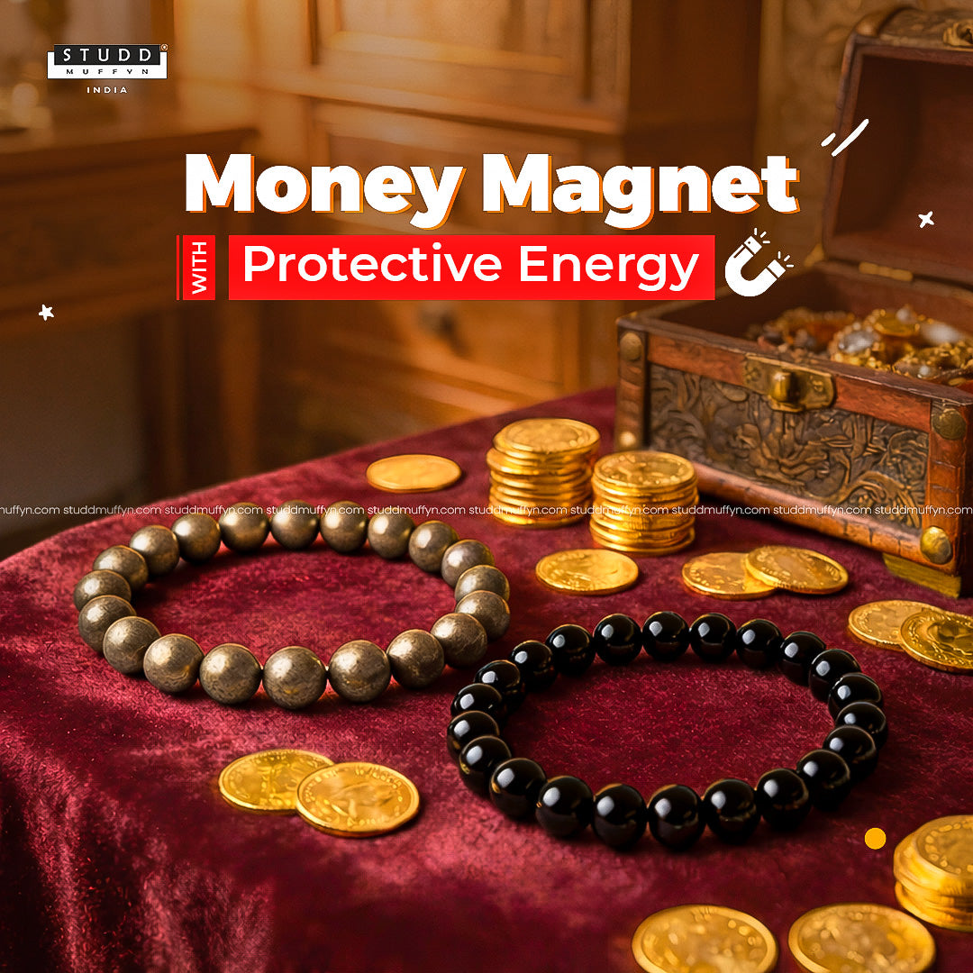Black Obsidian is a powerful crystal that acts as a guardian, shielding you from negativity and cleansing your energetic space whereas Pyrite, often called the "money magnet" is your key to attracting wealth and prosperity. It's not just about financial success; Pyrite also invites fame and overall success into your life.