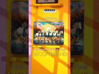 Invite the energy of momentum, clarity, and cosmic harmony into your space with Horses of Harmony – an exclusive creation from the range of Studd Muffyn Crystal Safari under Studd Muffyn Crystal Homes Series. Featuring seven powerful white stallions galloping toward the rising sun, this piece symbolizes unstoppable progress, determination, and divine flow.