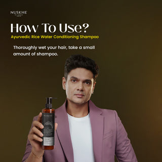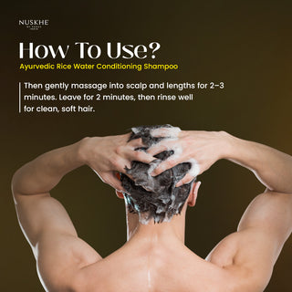 Wet Hair Thoroughly. Take Conditioning Shampoo in your Palm, rub together to emulsify and apply on your scalp and hair length. Massage the conditioning shampoo on your scalp with mild pressure for 2,3 minutes and keep it for 2 minutes. Rinse the scalp with plenty of water.