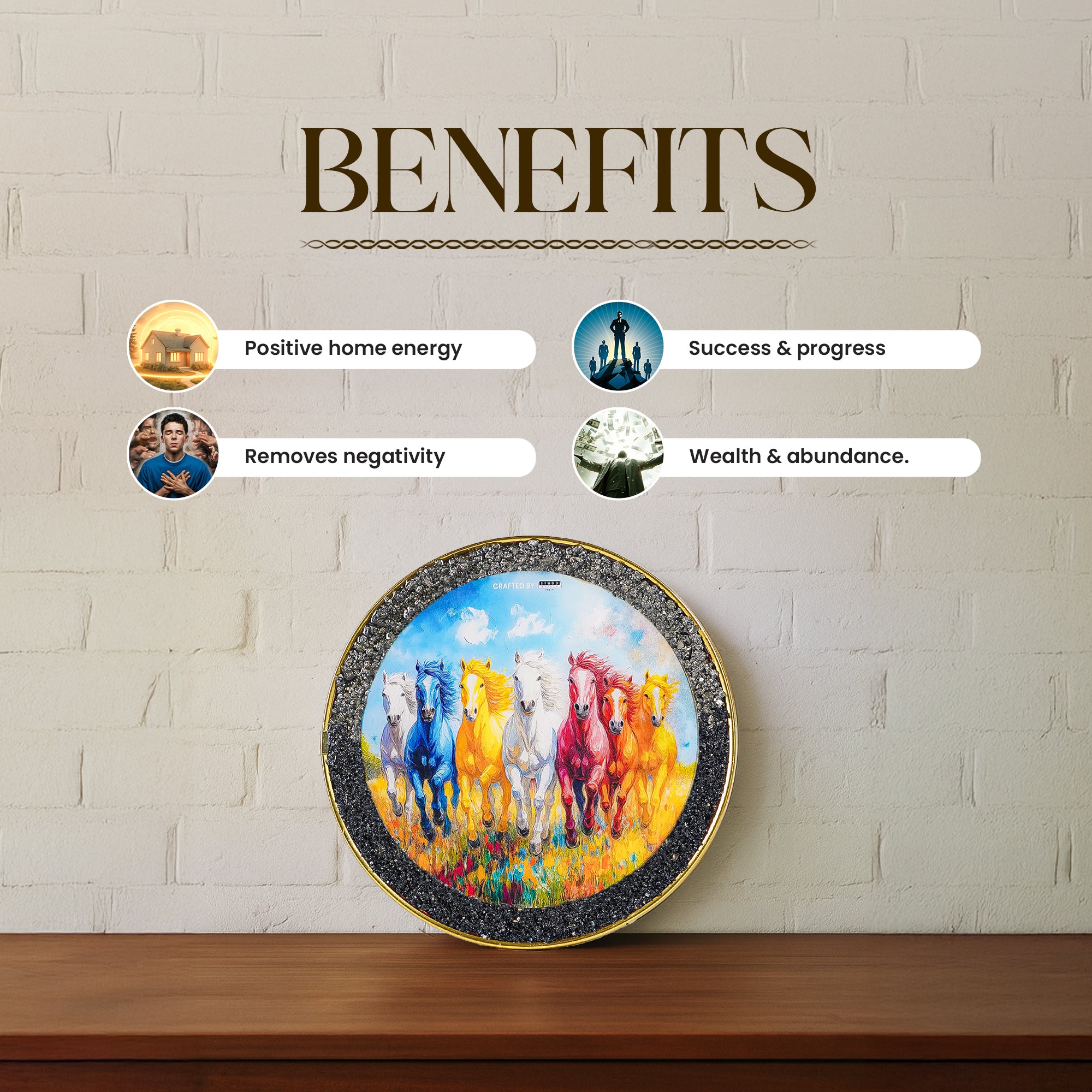 Harness the unstoppable energy of progress, prosperity, and divine flow with this limited-edition crystal masterpiece. Featuring seven vibrant rainbow horses, this artwork symbolizes victory, speed, and harmony, guiding you towards abundance and success.