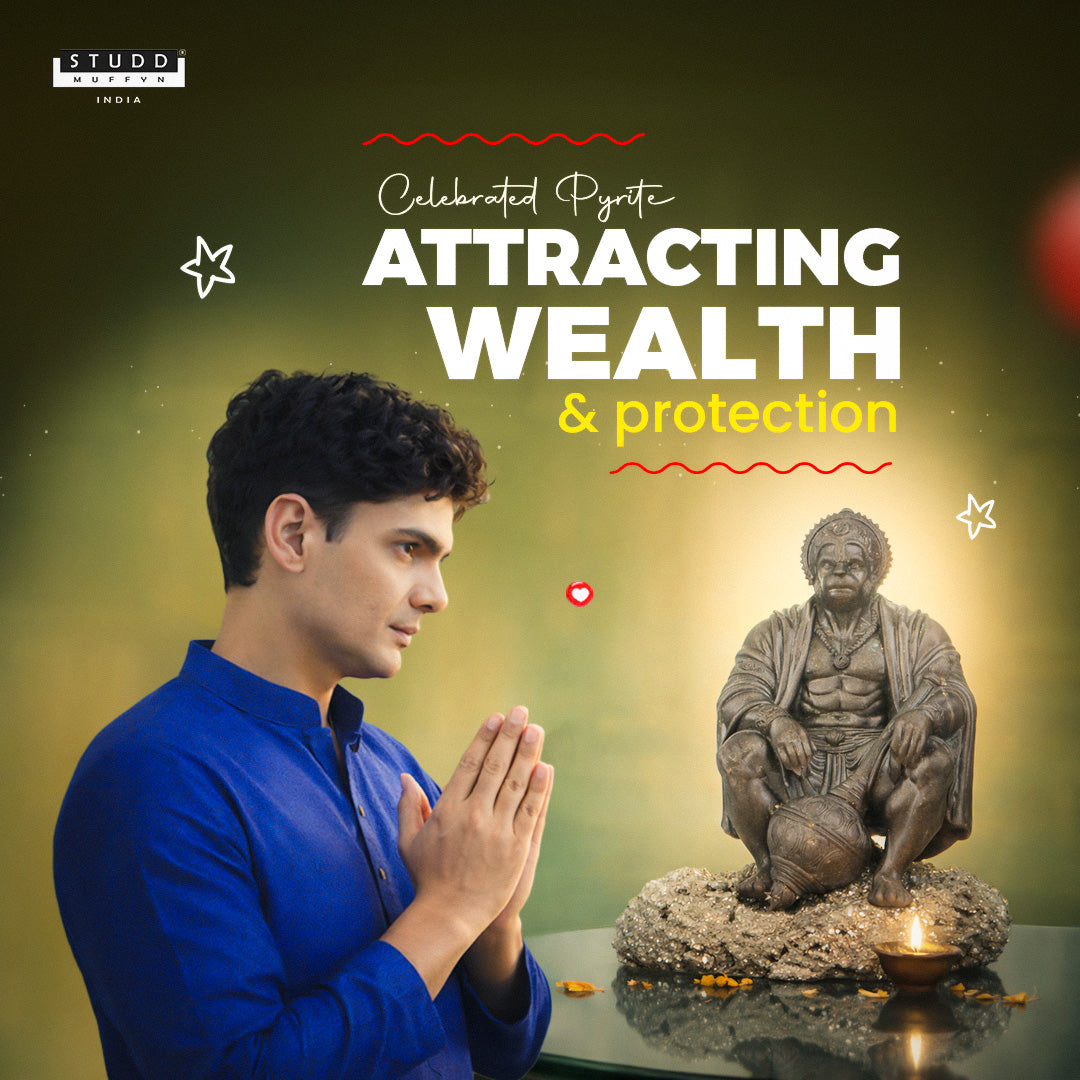 The Pyrite Geode, revered as the stone of protection and prosperity, amplifies Lord Hanuman’s divine aura — shielding your space from negative energies and empowering you with resilience and confidence. Together, they form a sacred fusion of spiritual protection and material abundance, perfect for both homes and workspaces.