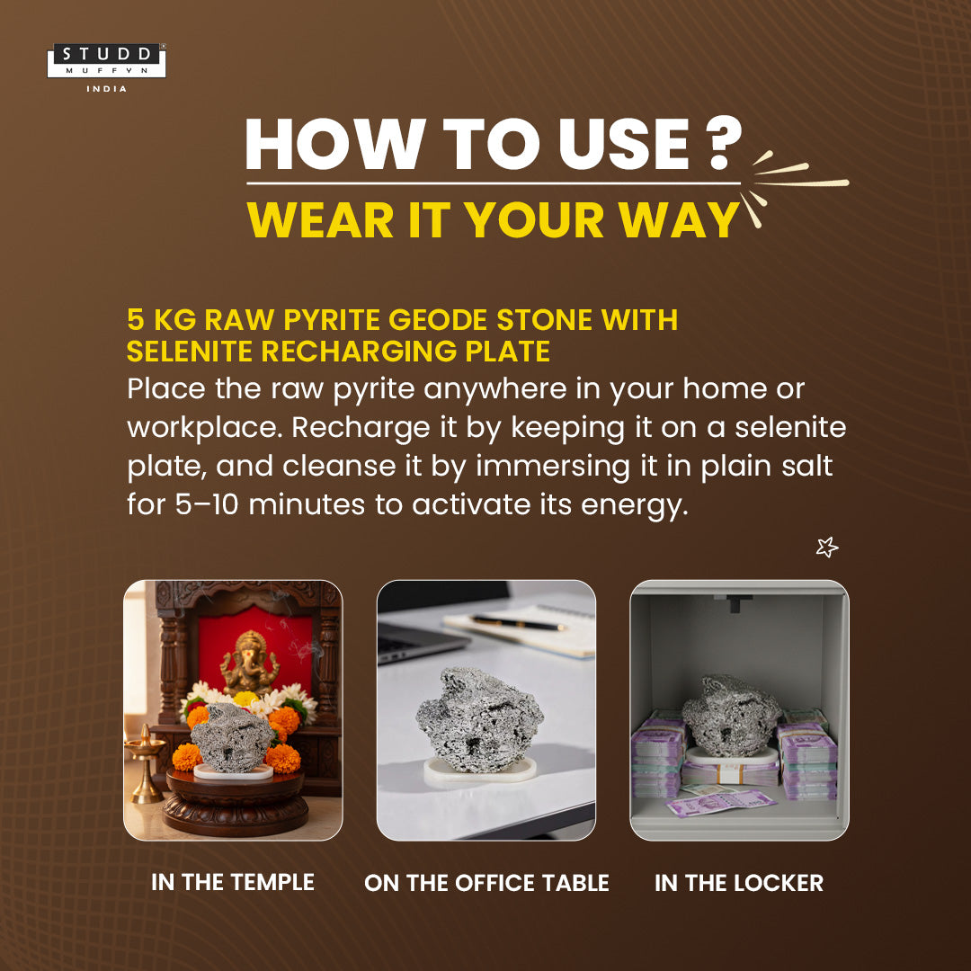 7 Kg Raw Pyrite Geode Stone With Selenite Recharging Plate