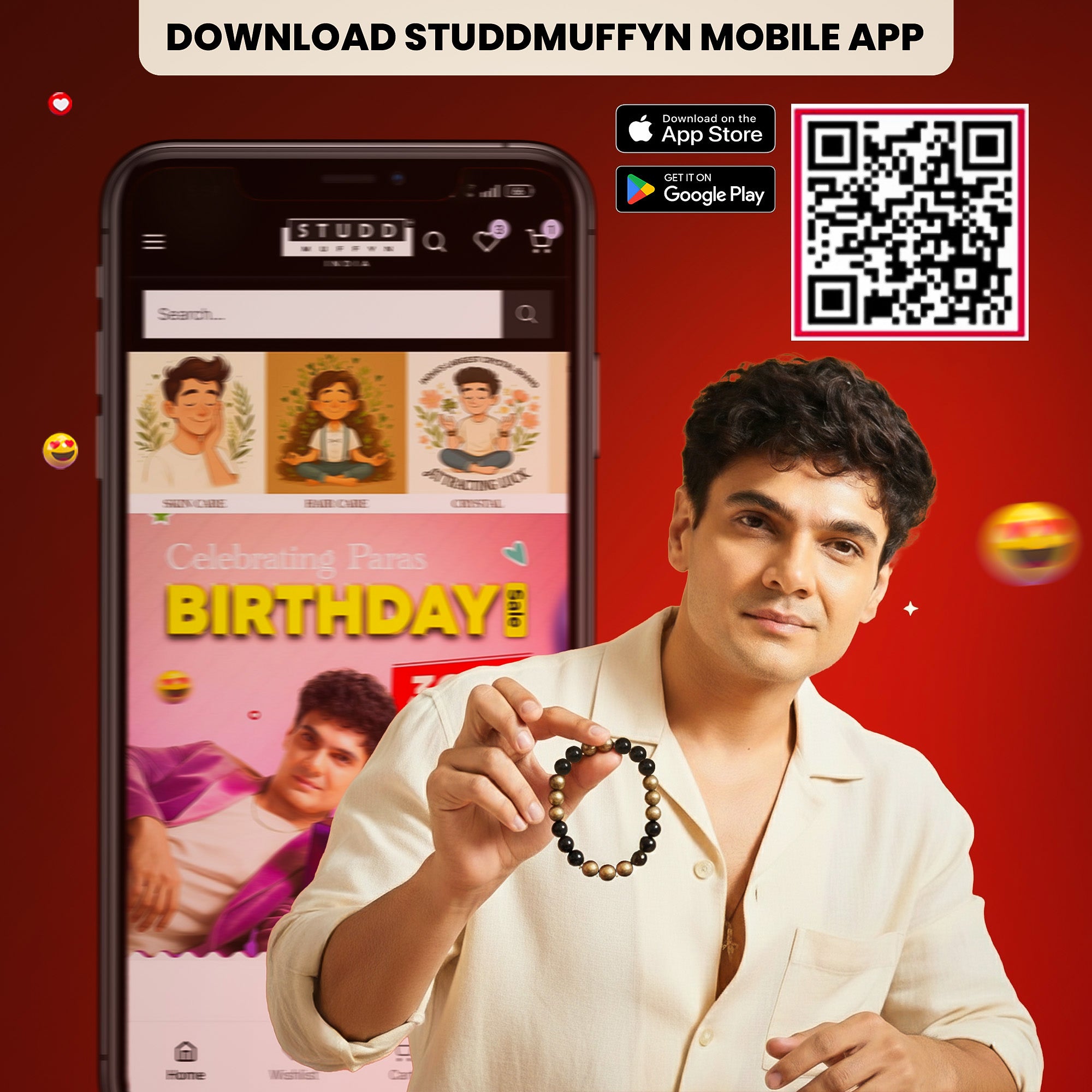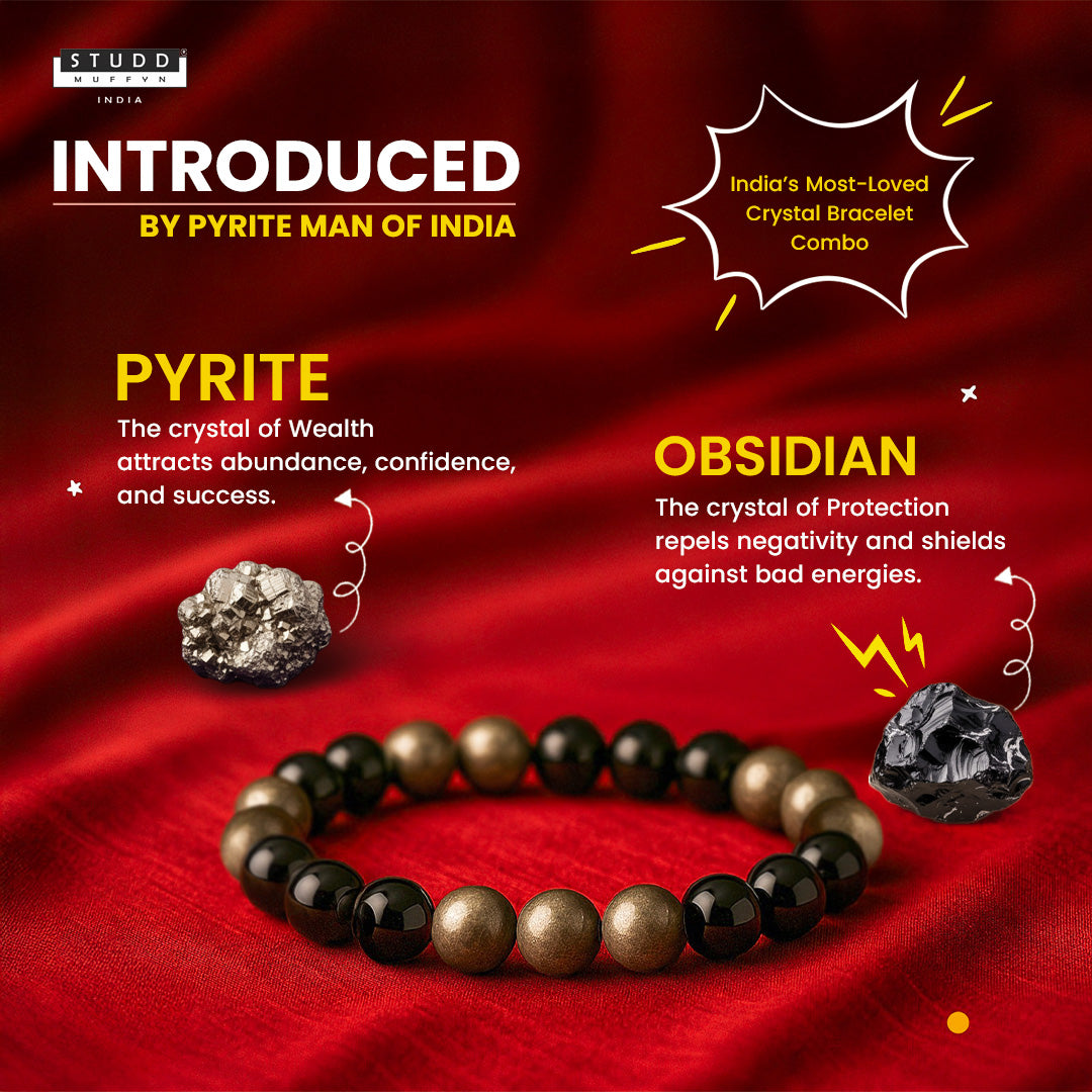 Studd Muffyn presents the Riche Rich Bracelet, a powerful combination of Obsidian + Pyrite beads, designed by the Pyrite Man of India Paras Tomar, to bring you double the energy in one stunning piece of jewelry.