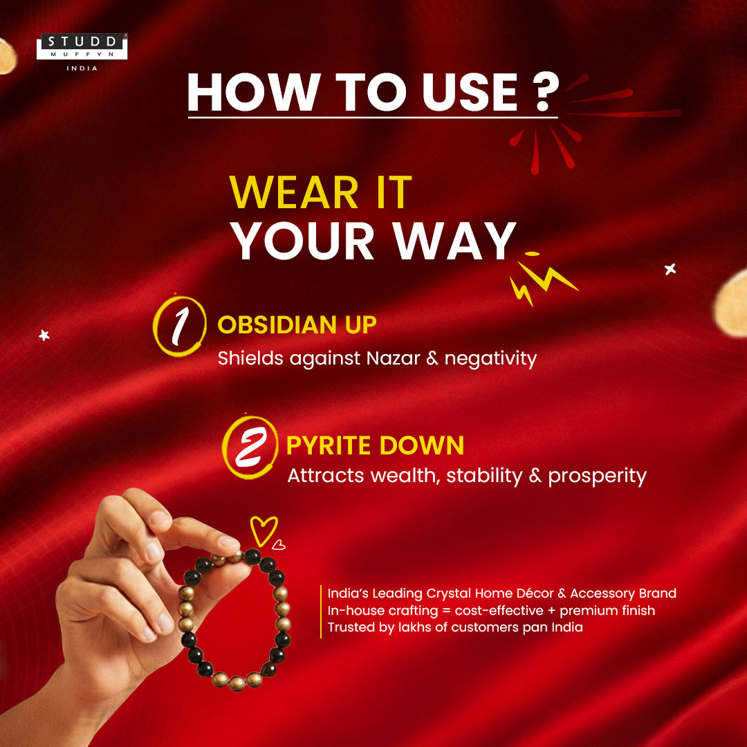 Wear It Your Way â đź Obsidian Up â Shields against Nazar & negativity đ° Pyrite Down â Attracts wealth, stability & prosperity Indiaâs Leading Crystal Home DĂ©cor & Accessory Brand In-house crafting = cost-effective + premium finish Trusted by lakhs of customers pan India