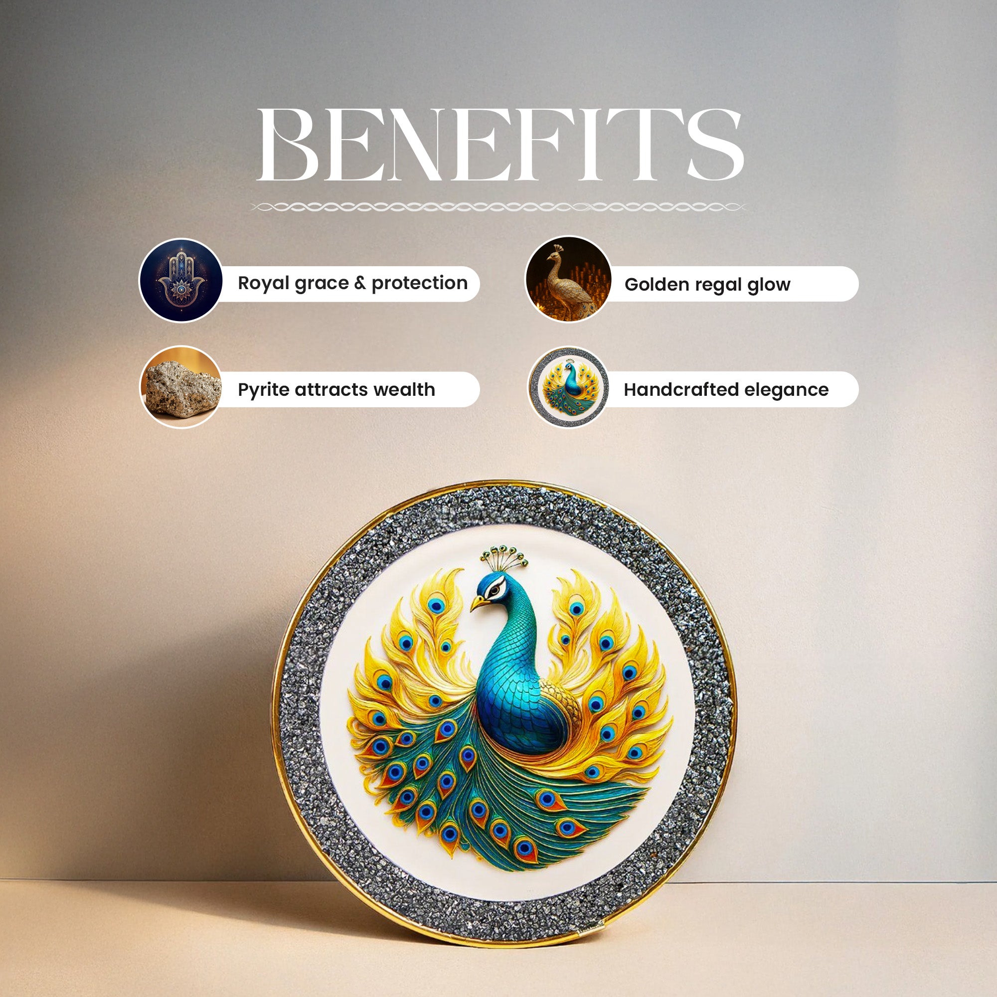 🦚 Royal Pyrite Peacock Plate – Symbol of Grace & Prosperity