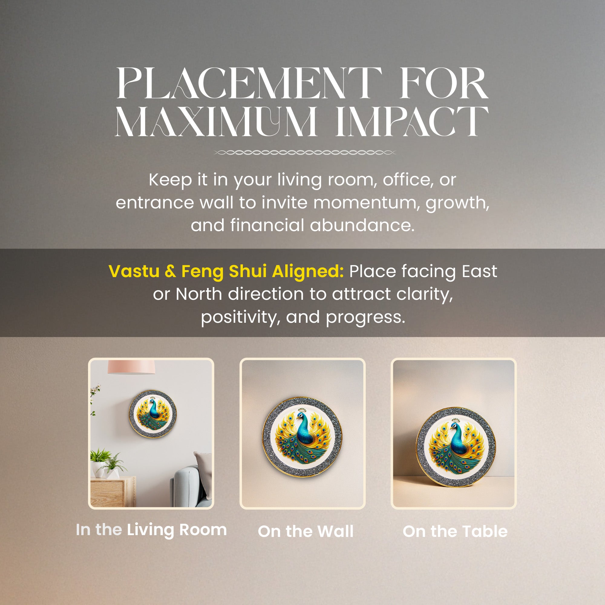 The peacock has always been celebrated as a timeless emblem of royalty, divine beauty, and positive transformation. In Indian tradition, it is believed to symbolize prosperity, joy, and spiritual awakening, while also protecting against negativity and evil energies. This stunning plate captures that very essence – a majestic peacock in full bloom, radiating grace and confidence.