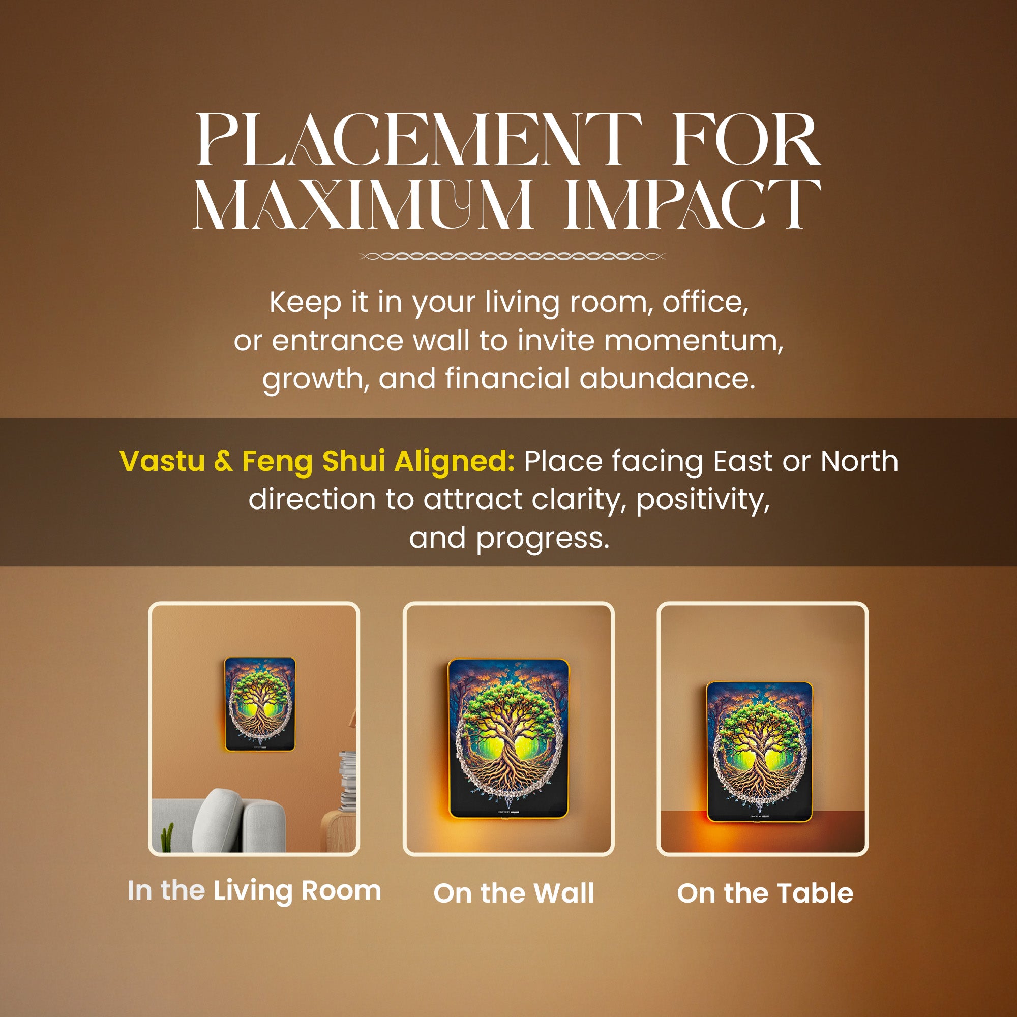 ✨ How to Use: Placement for Prosperity – Keep it in your living room, office, or entrance wall to invite momentum, growth, and financial abundance. Vastu & Feng Shui Aligned – Place facing East or North direction to attract clarity, positivity, and progress. Energize Your Space – The embedded rose quartz crystal radiates affection-attracting vibrations that uplift your environment. Daily Intention Setting – Stand before the artwork, take a deep breath, and affirm your goals while visualizing the framed artwork charging ahead with your dreams. Sacred Decor – Use as a spiritual décor piece that not only beautifies but also harmonizes energy flow at home or the workplace.
