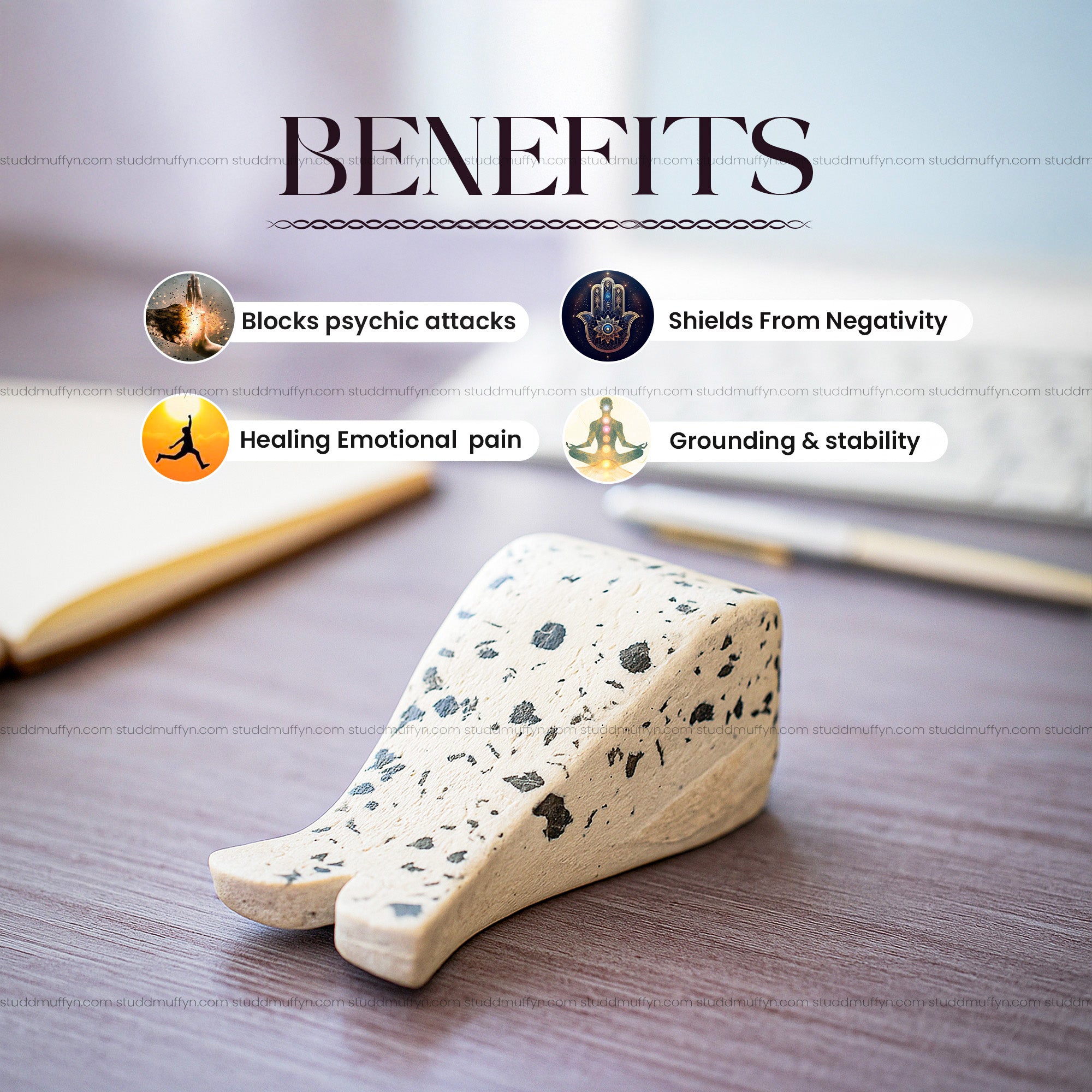 Crafted from terrazzo-inspired stone embedded with Black Tourmaline chips, this modern paperweight isn’t just functional—it’s a symbol of grounding and powerful energy shielding.