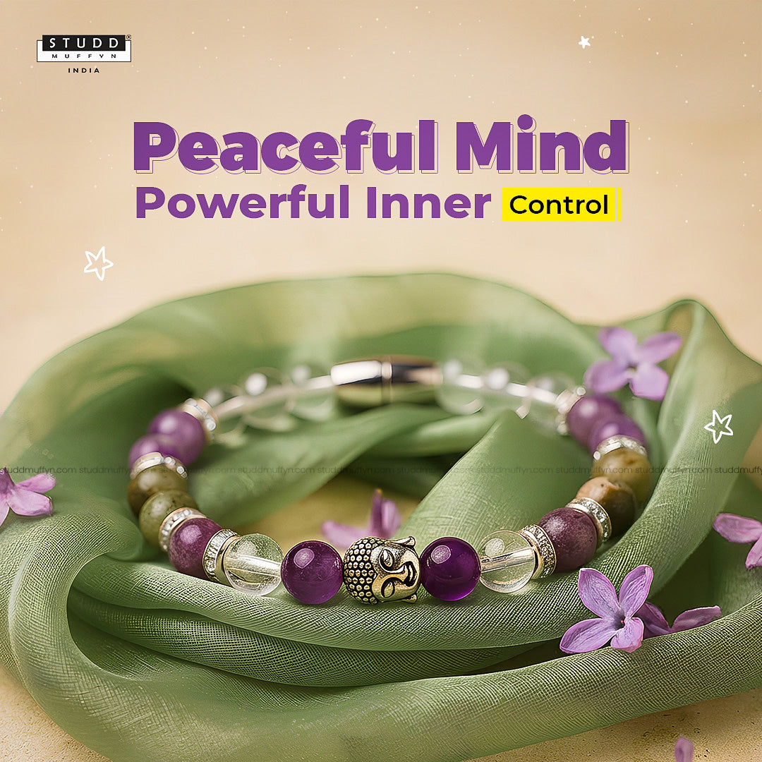 At the center sits a peaceful Buddha charm — a gentle reminder to slow down… take a deep breath… and respond with awareness instead of reacting quickly.