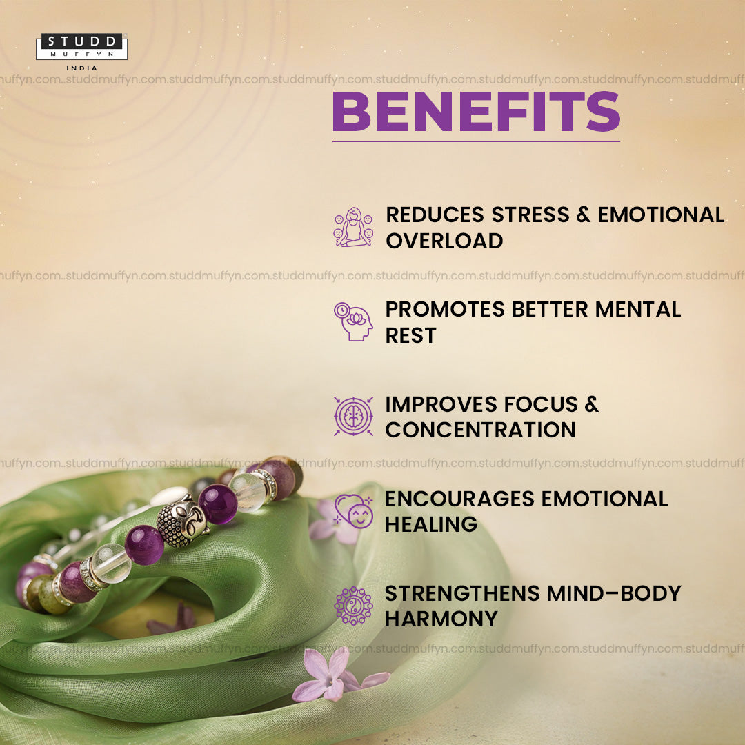 Simple in design yet meaningful in purpose, this bracelet is handcrafted with neat detailing, making it stylish for daily wear. Wear it during meditation, work, travel, or on days when you just need to feel more centered and clearer.