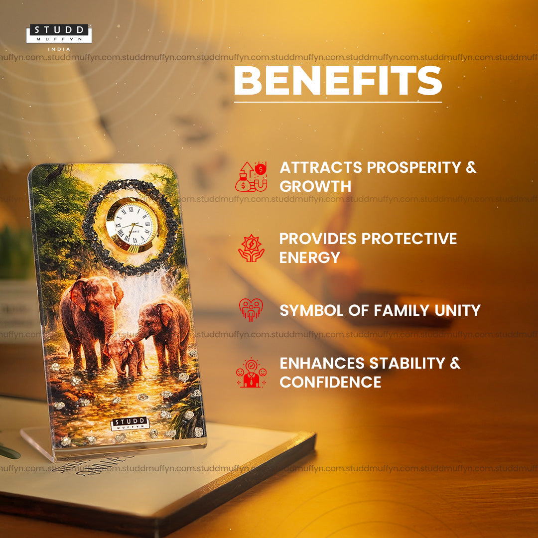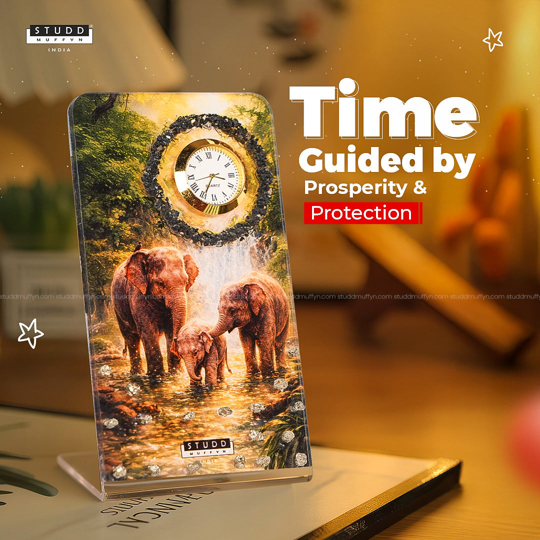 Introducing the Elephant Family Crystal Table Clock — a powerful symbol of abundance, unity, and protective strength, crafted to elevate your space with meaningful energy and refined luxury.