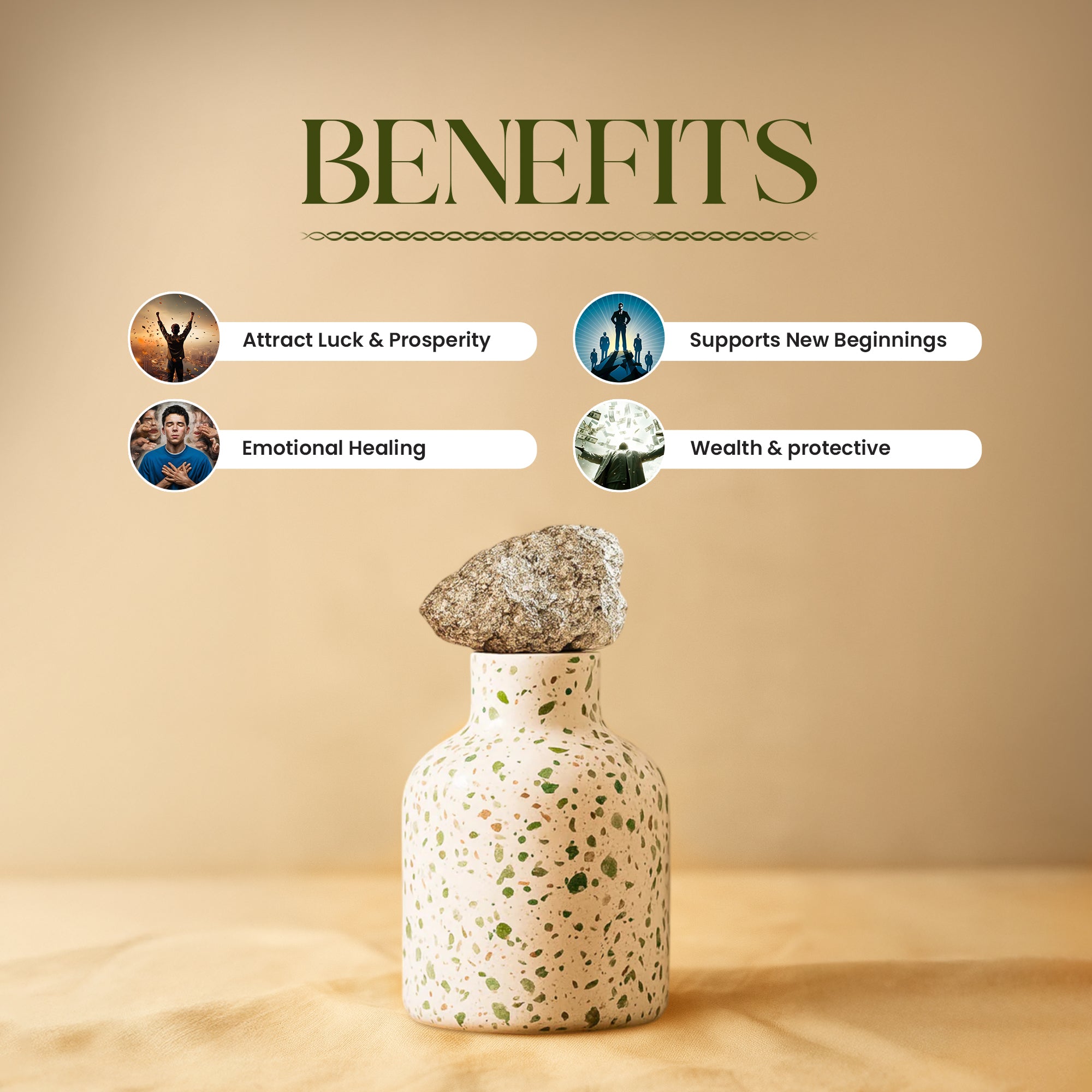 🎨 Artisanal Craft – With its terrazzo-style design and crystal crown, it’s both a décor statement and a sacred tool.