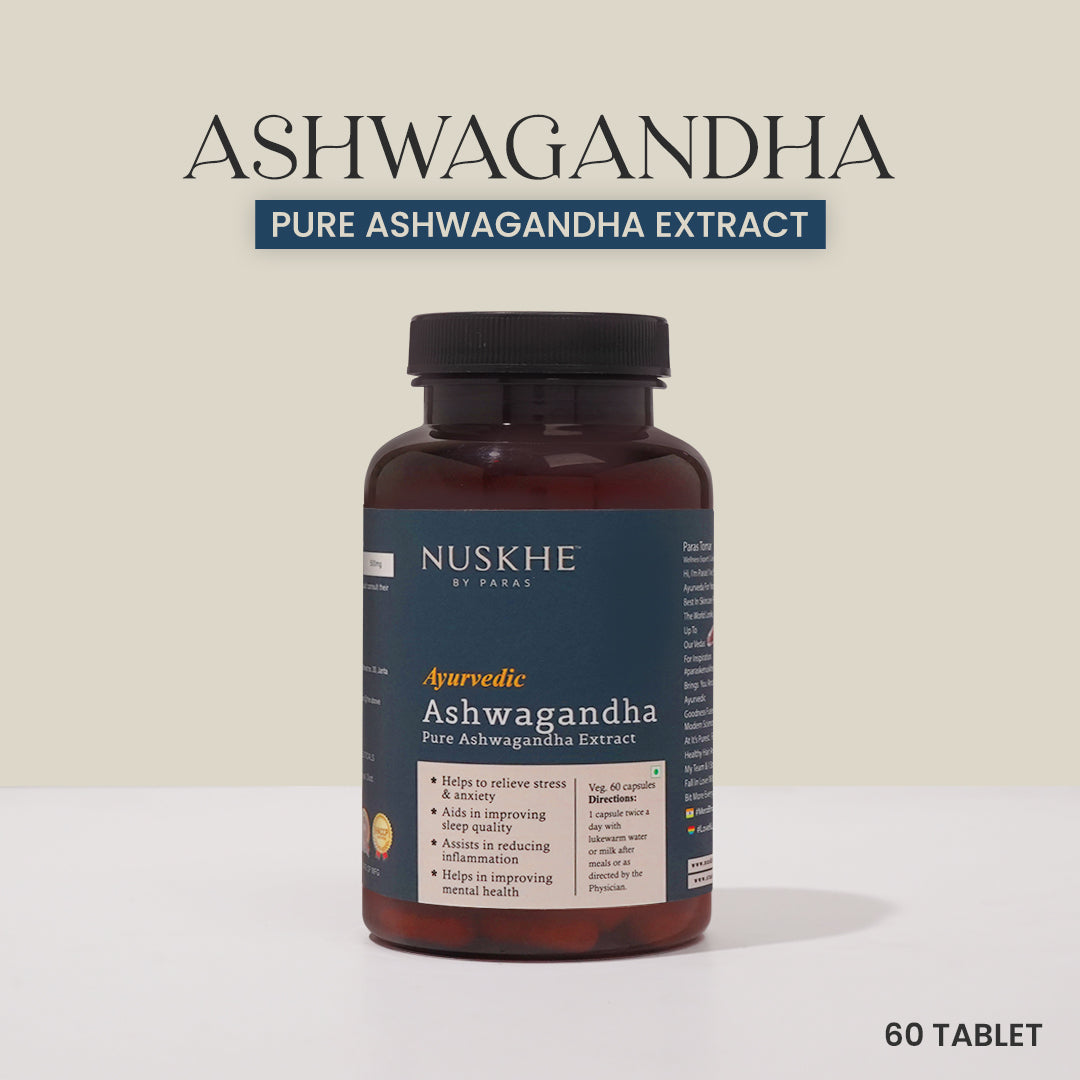 Nuskhe by Paras Ayurvedic Ashwagandha Pure Ext for Men and Women -60 Veg Capsules