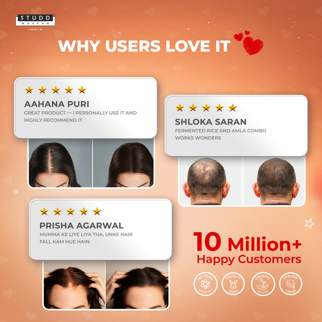 For centuries, fermented rice water has been celebrated as a natural remedy for long, strong, and healthy hair. We elevated this ancient tradition by blending it with Coffee, Bhringraj, and Amla — ingredients known to support hair regrowth, scalp nourishment, and reduced hair fall.