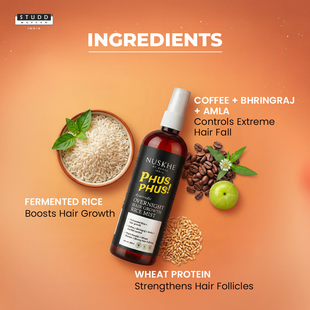 Introducing India’s First Fermentation-Based Rice Hair Mist — the most viral Phus Phus Hair Mist, revolutionizing the haircare industry. Each bottle is fermented for over 30 days, allowing the actives to mature, strengthen, and deeply nourish the scalp for visible hair growth results.