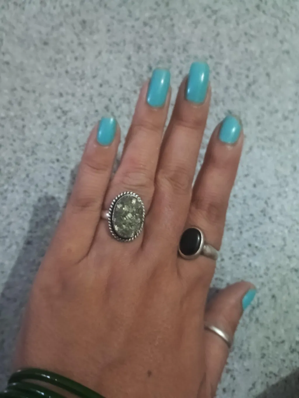 Pyrite is formed in hydrothermal veins, sedimentary rocks, and metamorphic rocks. It requires iron, sulfur, and certain environmental conditions for its formation. Bacterial action can also contribute to its formation in sedimentary rocks. About The Product -- 1 Crack-like lines, fissures, uneven texture or beads and crystals are natural. 2 If a crystal breaks or snaps in half or in pieces, or sometimes could break while in transport … it does not affect the quality of the crystal. Crystals are naturally brittle and a broken crystal just means now you have more than one piece. Any crystal piece you have is any way broken from a larger chunk. 3 In case your bracelet, pendant, or ring feels like it’s not your size, feel free to transfer them in a new string or to get them re-made with a jeweler. If a bracelet string breaks at some point, just put the beads in a new string. 4 This ring has been cast with natural, unpolished geode and nothing else. 5 This pyrite ring stone is straightly breakdown from pyrite stone so the shape and size of the ring can vary. Every time you order the ring, you will get a differently-shaped ring.