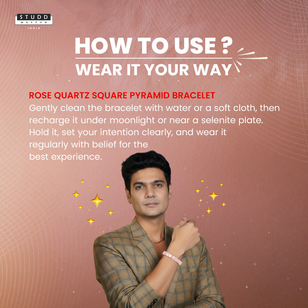 The Rose Quartz Square Pyramid Bracelet is a beautiful symbol of love, harmony, and emotional warmth. Known as the crystal of unconditional love, rose quartz is believed to attract love, strengthen relationships, and bring a sense of comfort and peace. Its soft pink tones and square pyramid-shaped beads make this bracelet both meaningful and stylish.