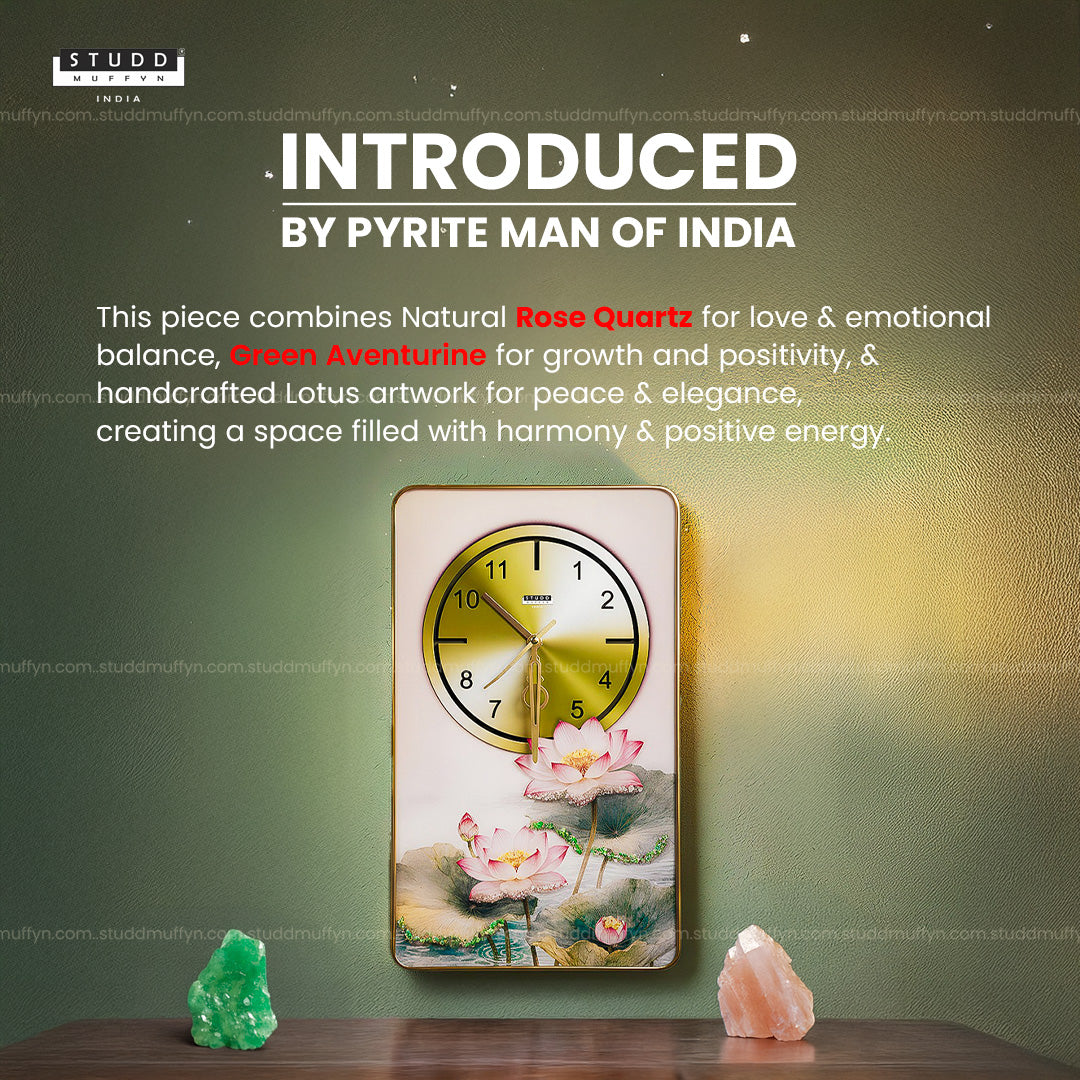 From the house of Studd Muffyn Crystal Homes, bring calm, love, and gentle abundance into your space with the Rose Quartz–Aventurine Lotus Clock. This wall clock beautifully blends peaceful artwork with soothing crystal energy, making it perfect for homes that love calm and elegance.