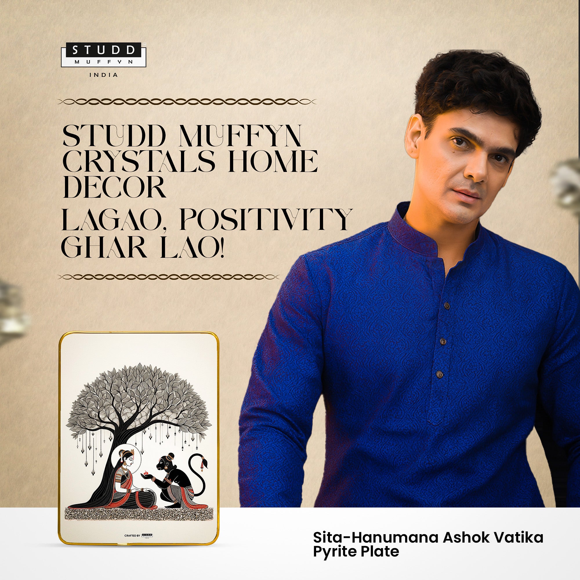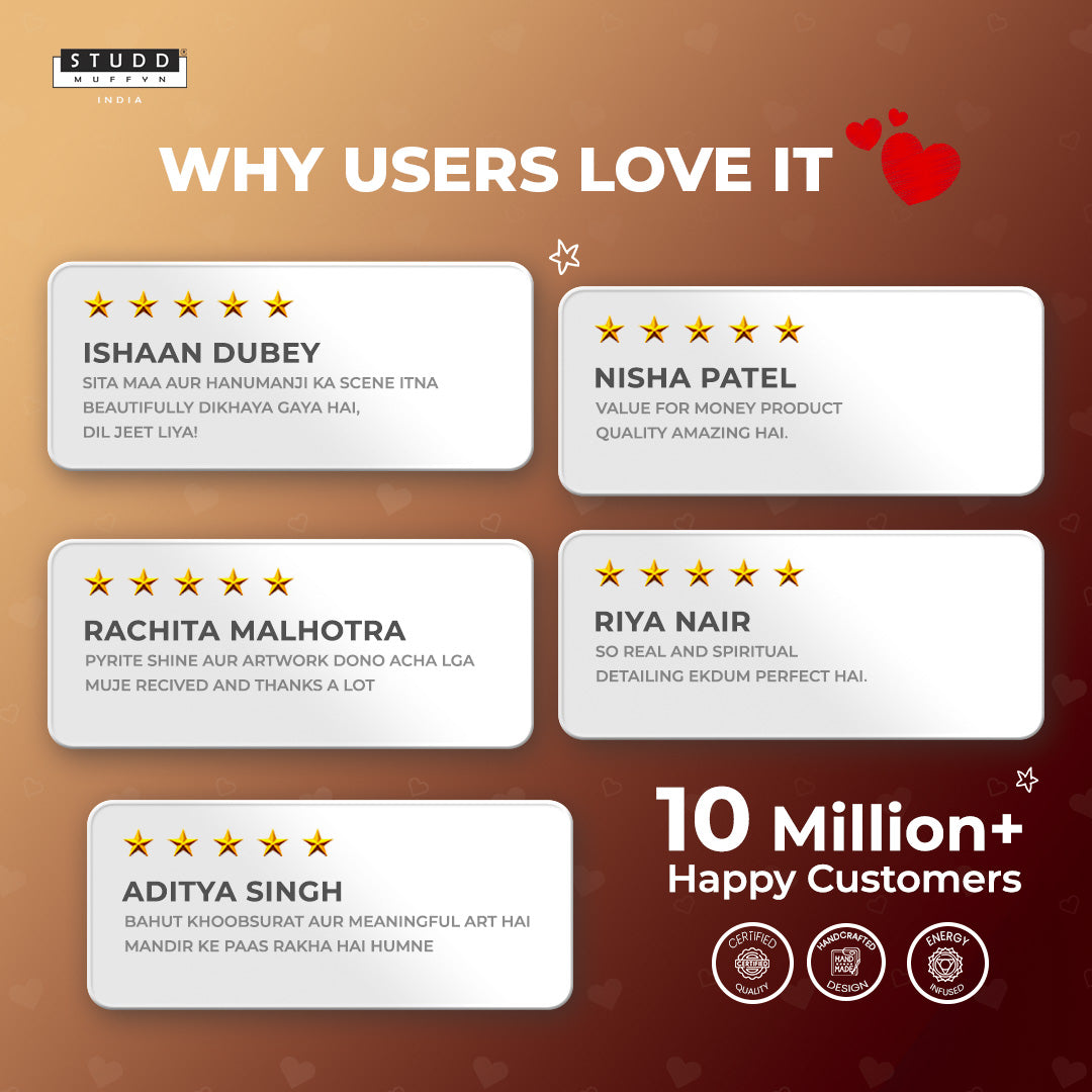 Bring home the divine moment from Ramayana — where Lord Hanuman meets Maa Sita in Ashok Vatika with Shri Ram’s message of hope. This handcrafted art plate is adorned with authentic Pyrite crystals, symbolizing protection, courage & prosperity.