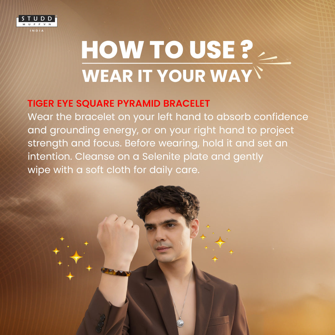 Made for bold minds and fearless action, the Tiger Eye Square Pyramid Bracelet stands as a symbol of strength, courage, and inner authority. Designed with a structured square pyramid form, it represents grounded ambition, focus, and stability—perfect for those who lead with intent.